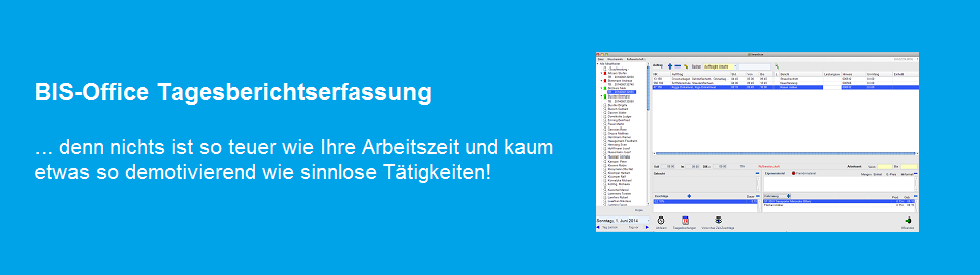 Erfassungsansatz ist nur dann gefunden,wenn bei der Dokumentation der Leistung, wie auch bei der Kontrolle und Verarbeitung der Daten Zeit gespart werden kann. Aufgrund der zum Teil völlig unterschiedlichen Arbeitsabläufe und Personal-voraussetzungen, haben wir deshalb für BIS-Office mehrere Datenerfassungsvarianten entwickelt.